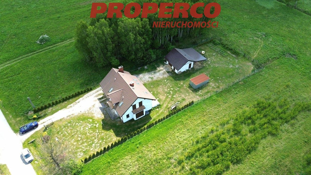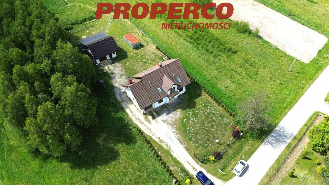 For sale: a detached house located in Pielaki, Mniów municipality. The building has a total area of 213.52 m² (usable area 169.22 m²) and is situated on a partially developed plot of 3,407 m².